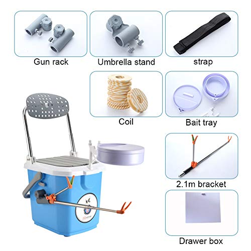 ★ Das Paket beinhaltet: Angelbox + Pistolenständer + Schirmständer + Riemen + Drahtbox + Köderbox + 2.1m Halterung