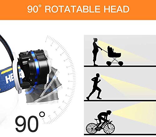 Comfortable and adjustable: Die freihändige Scheinwerfer können um 90 Grad gedreht werden, so dass sie ideal für den Innen-und Außenbereich ist. Es ist mit einem hochwertigen Elastisches Stirnband und einer Kopfschwammauflage für eine einfache Einstellung und Installation ausgestattet. nicht rutschend, Das macht es bequem für Erwachsene und Kinder.