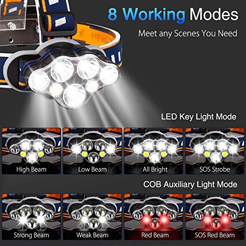 Yiyicas 7 LED Stirnlampe mit Batterien, wasserdichter Kopflampe USB Stirnlampe wiederaufladbar,18000 Lumen 8 Modi…