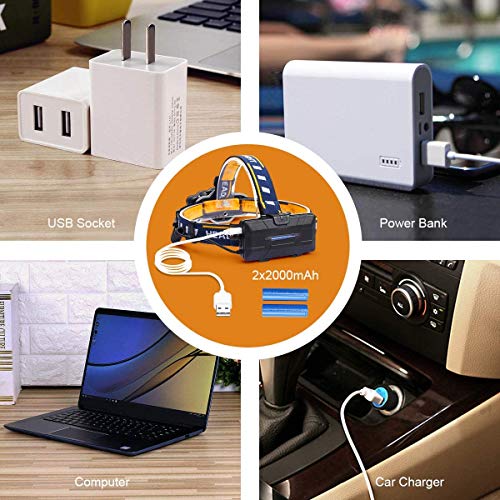 Ultra helle und lange Lebensdauer: Der Scheinwerfer besteht jeder 7 LED-Glühbirnen und einem roten Sicherheitsrücklicht Mit einer maximalen Helligkeit von 12000 Lumen und Beleuchtungsbereich von 500 Metern, die Ihnen helfen, die Umgebung klar zu sehen und sich von Gefahren fernzuhalten. Es wird mit einer USB-Ägide und 2 wiederaufladbaren Batterien geliefert um ein stärkeres, helles und längeres Leben zu ermöglichen.