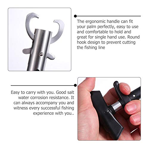 Der ergonomische Henkel passt perfekt in Ihre Handfläche, ist einfach zu bedienen und bequem zu halten und ideal statt dessen die Einhandbedienung. Rundes Haken-Design, um das Kürzen der Angelschnur zu abwenden. Es gibt ein Befestigungsloch am Hakenentferner-Henkel, daher Sie das Anti-Schaden-Schlüsselband installieren können. Leicht zu transportieren. Gute Salzwasser-Korrosionsbeständigkeit. Es kann Sie die ganze Zeit begleiten und jedes erfolgreiche Angelerlebnis mit Ihnen erleben.