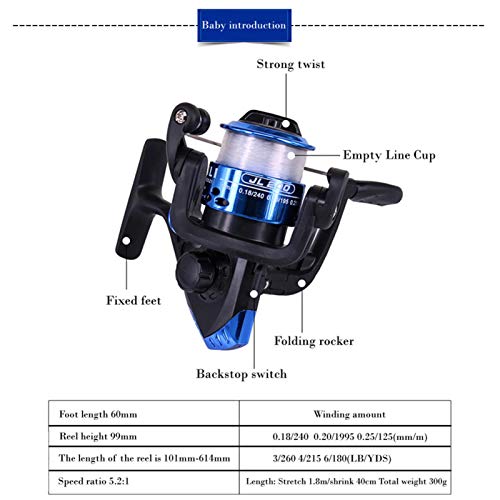 Einfach und leicht, die Angelgerät ist ca. 1,8 m lang, die einziehbare Länge beträgt ca. 40 cm, und das Gesamtgewicht des Sets beträgt ca. 300 g. Das teleskopische Design der Stange erleichtert das Abstützen und Aufbewahren.