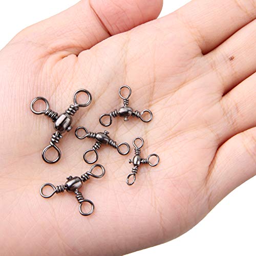 AGOOL Drei-Wege-Kreuz-Line-Fischwirbel Set – 100 Phase Messing T-Turn Triple Swivel Connector Schnellrollwirbel Tackle Zubehör für Salzwasser Süßwasser