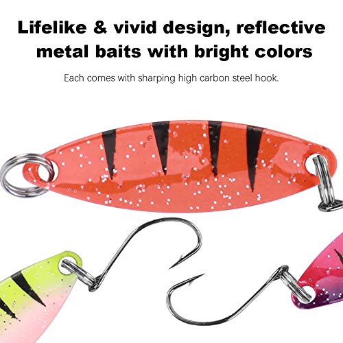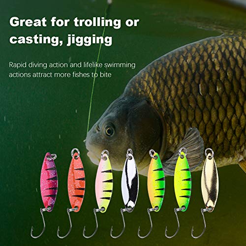 【ATTRAKTIVES DESIGN】 Lebensechtes, lebendiges Design, reflektierende Metallköder mit leuchtenden Farben, jeweils mit einem scharfen Haken aufgebraucht Kohlenstoffstahl. Schnelle Tauchaktionen und lebensechte Schwimmaktionen ziehen mehr Fische zum Beißen an, ideal zum Trolling oder Casting, Jiggen.