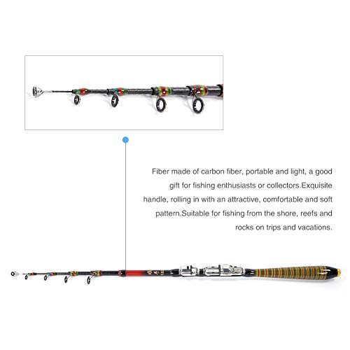 Diese Angelrute ist ultrakurz teleskopierbar, kann bequemer und leichter zu unterstützen sein. Hergestellt Ganz Kohlefaser, annehmbar und leicht. Hochleistungs-360-Stufung-Führungsringe, die sanft gegossen werden, und Wiederherstellungslinie. Ein gutes Geschenk für Angler oder Sammler.