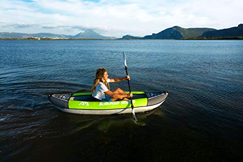 Hochwertiges, aufblasbares PVC-Kajak im Sphäre-Inklusive-Set – ideal sondern Nichtfachmann und Fortgeschrittene, die auf Flüssen und Seen unterwegs sind; Verstellbarer Kajaksitz mit Lehne und mehreren Aufbewahrungstaschen