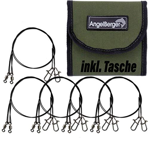 Das Angelrute Berger Stahlvorfachsortiment anhand Beutel besteht ganz 3 verschiedenen Vorfächern Tragkraft 5Kg, 9Kg weiterhin 15Kg. Im Großen und Ganzen sind 6 hochwertige 7×7 Stahlvorfächer in einer Vorfachtasche verstaut. Fehlerlos zum Hecht sicheren Spinfische!