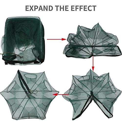 Vielfältige Verwendung: Fischernetz-Falle mit sechs Eingängen ist ideal zum Auffangen von Geruch, Aalen, Krabben, Hummer, Minnows, Garnelen und Krebse.