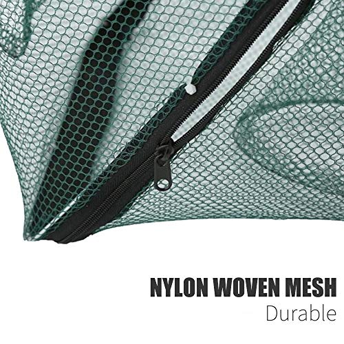 Einzigartiges Design: Verwenden Sie sechs solide Stahl-Halterungen, so dass das Netz übergeschnappt ist. Spezielles Reißverschluss-Design sondern einfaches Herausnehmen von Fischen, Krabben, Hummer und Krabbeln.