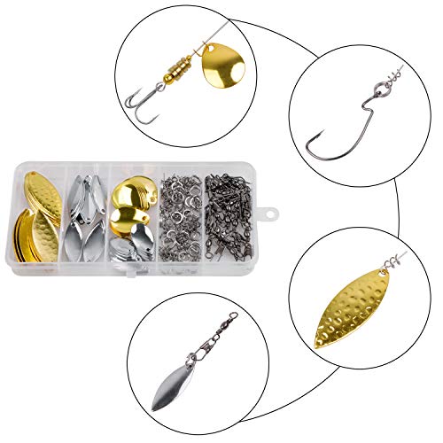 Hochwertiges Material Spinnköder-Bastelset: Spinner/Löffel sind jeglicher Kupfer und Edelstahl, sie sind Premium-Material für langes Angeln. Das DIY Spinner Rigs Set hält Spins makellos, ideal für die Herstellung von Forellen-Spinnern, Buzzbait-Spinnern, Inline-Spinnern für Barsch, Stahlkopf, Lachs und verschiedene Arten von Köder-Rigs.