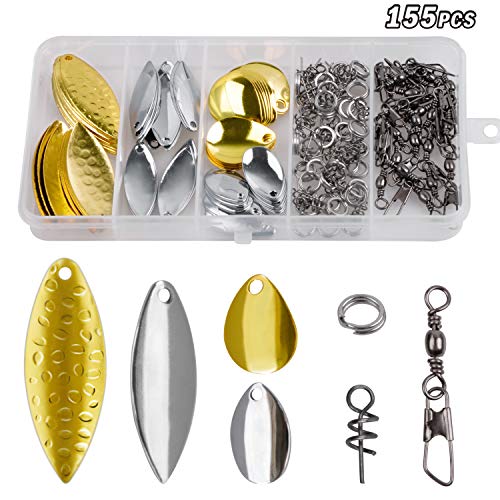 Shaddock Colorado Klingen Kit Box: insgesamt 155 Ausschnitt Angelset enthält 65 Ausschnitt Gold und Ag Klingen, 20 Ausschnitt Drehknöpfe, 40 Ausschnitt Spaltringe und 30 Ausschnitt Drehschlösser. Jedweder werden in einer Angelbox geliefert, die leicht organisiert ist.