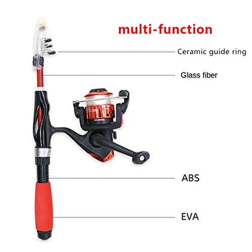 Das Set umfasst: tragbare Teleskop -Fischereistruppen umfasst eine geradlinige Angelrute, ein Gewinde -Spinnrad, ein Köder -Set und einen tragbaren Attackierender -Tackle -Beutel