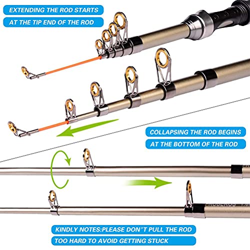 【Teleskopische Angelrute】: Angelrute nicht mehr da Kohlefaser mit hoher Dichte, leicht und langlebig. Es ist einziehbar, die entfaltete Länge beträgt 1,8 Meter, und die geschlossene Länge macht es stark angenehm, zu befestigen, bereit für Ihre wundervolle Angelfahrt kontinuierlich!