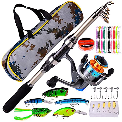 【Komplettverpackung】: mit einem stark kompletten Zubehör, qua zum Beispiel Angelausrüstung, Angelrute, Angelrolle, 100m Nylon-Linie usw. (Details ansehen). Es ist bequem, die Angelausrüstung zu erwerben, die Sie zu einem Zeitpunkt benötigen.