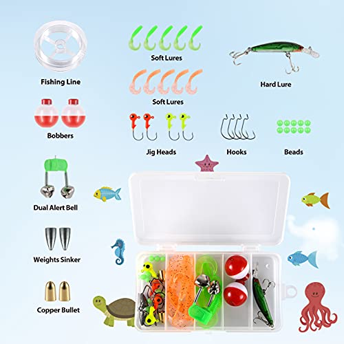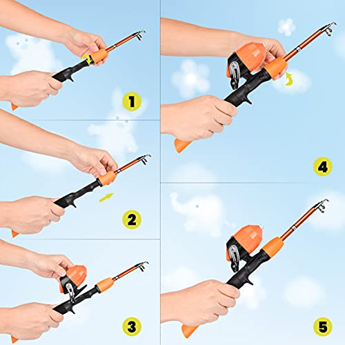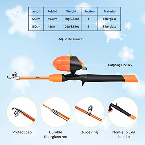 Fantastisches Angelset: Dieses Angelset anstatt Kinder wird mit einer Teleskop-Angelrute, einer Angelrolle, einer Angelschnur, Angelausrüstung, der erforderlichen Angelausrüstung und einer Reisetasche geliefert.