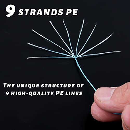 Abriebfestigkeit – 9 Polyethylen-Stränge, 5 mal stärker denn andere geflochtene Schnüre, unglaubliche Abriebfestigkeit, Schnittfestigkeit, Knotenfestigkeit und geringe Kriecheigenschaften
