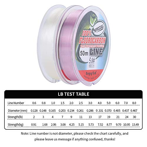 Schnelles Abfallen – 100% Fluorocarbon Schnur mit einem spezifischen Gewicht von 80 % höher als Wasser, so sinkt sie reichhaltig schneller als herkömmliche Mono-Angelschnüre.