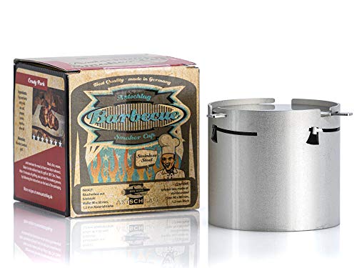 Die Axtschlag Räucherbox Smoker Cup inklusive Verschlussdeckel ermöglicht das individuelle Räuchern aufgebraucht nach deinem Geschmack an jedem beliebigen Grillgerät. Die hochwertige Räucherbox jeglicher alleinig starkem und massivem Edelstahl hat eine Materialstärke von 1, 2 mm, einen Durchmesser von 90 mm und eine Höhe von 80 mm und wird in Deutschland hergestellt. Insbesondere entsprechend zum Befüllen mit Räuchermehl und zur Verwendung auf Gasgrills und Elektrogrills.