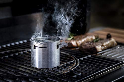 EINFACHE ANWENDUNG: Einfach den Smoker Cup bis zur Hälfte mit Räuchermehl befüllen, fertig stellen, auf der wärmsten Stelle auf dem Grillrost neben dem Grillgut platzieren und Grill herleiten. Nach ca. 10 Minuten entsteht ein gleichmäßiger Rauch