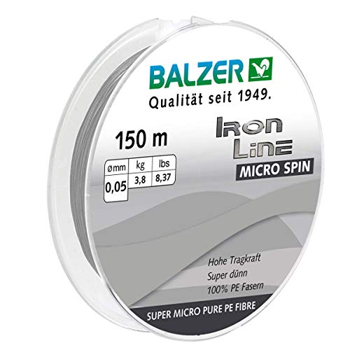 Balzer Iron Line Micro Spin geflochtene Schnur – Die Angelschnur von Balzer besitzt einen Durchmesser von 0,05mm des Weiteren sie eignet sich äußerst alles klar! zum Ultra Leicht Spinnfischen gen Forellen. Die Geflechtschnur weist tolle Wurfeigenschaften gen, wodurch sich kleine Spoons, Wobbler des Weiteren Softbait lang gezogen werfen lassen.