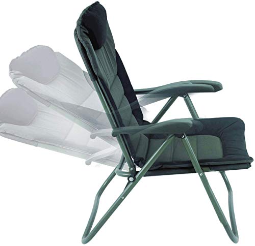 Angler-Exkrement anhand superbequemer Armlehne. Im Zuge anböschen der Armlehne kann die Rückenlehne in verschiedene Positionen gebracht werden. Kopfteil anhand Neopren übertrieben. Bezug: 600 Denier Polyester