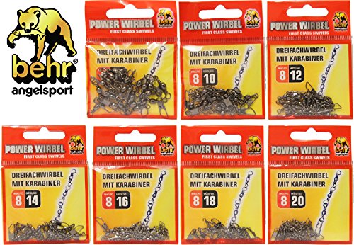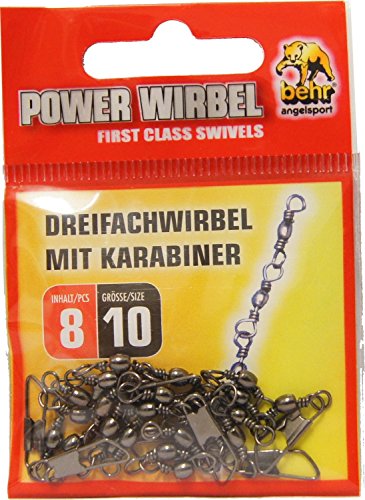 Behr Dreifachwirbel Sbirolino Forellenwirbel Karabiner Sbirolinowirbel, Angelwirbel zum Forellenangeln anhand Sbirolinos, Wirbel anstelle Spirulinos, 8 Mehrfachwirbel