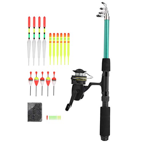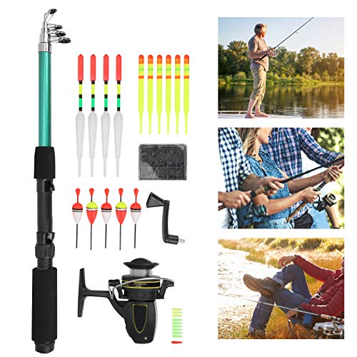 【Kombinationspaket】 Dieses Angelset enthält Angel, Rolle mit Schnur, Henkel, Haken, Hakenbox, Schlauch und verschiedene Arten von Schwimmern.