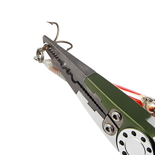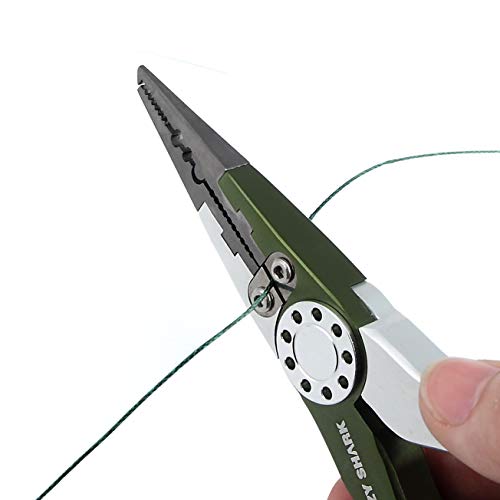 2. Edelstahl-Spaltring-Sägezahnbacken mit Teflon-Finish. Einzigartige Haifischzahn-Backenokklusion macht langlebig und nicht leicht zu loshaken. Mit Multifunktions-Grifflinien, Spaltring (perfekt geteilter 6,5# Ring), Quetschblei und Crimphülsen.