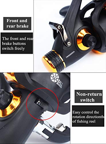 🐟 Solide und langlebig, Unterstützung für beide Seiten, kann leistungsfähig wirken und es leicht machen, große Fische zu bekommen. Hochsteife, geriffelte Scheiben- und Stahl-Zahnstangen-Übertragungsstruktur Acht geben reibungslosen Betrieb und helfen, Fisch ohne Anstrengung zu bekommen.