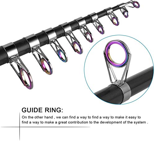 Die Teleskopstange besteht jedweder Kohlefaser und ist im Unterschied dazu hart, langlebig und überaus leicht. Einfach zu versteifen und in den Rucksack zu stecken, sodass Sie reisen und angeln können, wann und wo immer Sie möchten. Mit den Merkmalen guter Elastizität und starker Tragfähigkeit. Die Stange bedeckt vielerlei Arten wie Bass, Forelle und so weiter. Ultraempfindlich, leicht und reaktionsschnell. Ideal zum Angeln an der Küste, an Riffen und ideal für Reisen und Urlaub.