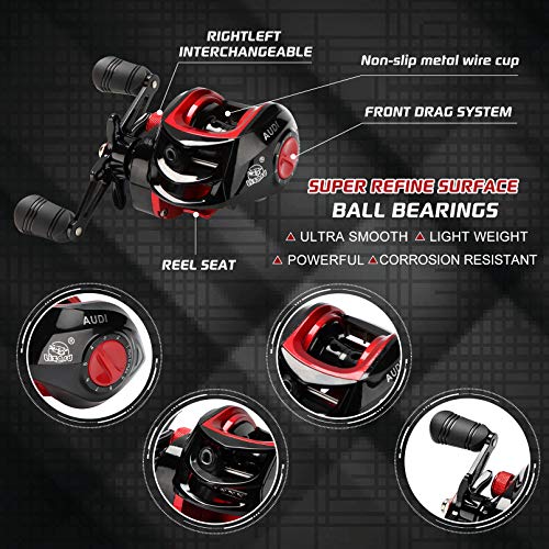 Baitcasting Angelrolle: Links- oder Rechtshänder zur Auswahl. Doppeldichtungslager jedweder Edelstahl, wasserdicht, Rostschutz, sonstige Invasion. 17 + 1BB Kugellager. Übersetzungsverhältnis: 7,2: 1. Magnetisches Bremssystem: 9 Gänge. Maximal 8 kg starke Widerstandskraft. Es wird ein leichter Metallbecher verwendet. Hochfester, leichter Linienbecher, reibungsloser Betrieb.