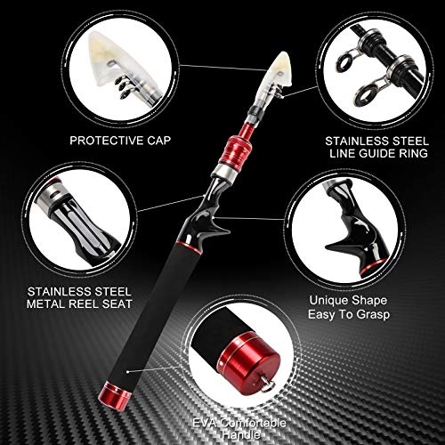 Die Teleskop-Angelrute besteht jedweder Kohlefaser und ist nichtsdestoweniger hart, langlebig und enorm leicht. Die Ministange ist beim Stornieren so kurz und beim Herausziehen so lang. Einfach zu unterstützen und in die Tasche zu stecken, sodass Sie reisen und angeln können, wann und wo fortwährend Sie möchten. Mit den Merkmalen guter Elastizität und starker Tragfähigkeit. Die Stange bedeckt diverse Arten wie Bass, Forelle und so weiter. Ultraempfindlich, leicht und reaktionsschnell.