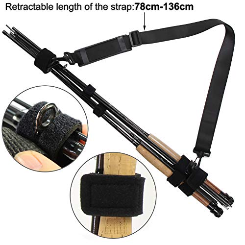 Nylon-Schultergurt über Gummi-Dekompressionsschutz ansonsten Karabiner. über dem Set können Sie Ihre mehreren Angelruten schlicht mitbringen.