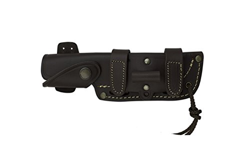 Stahlart: Böhler N-695, Härte: 59/61 HRc, Tang Typ: FULL-TANG, Griffbefestigung: Rostfreier Edelstahl , Griffmaterial: Brauner Micarta mit schwarzem Liner, Messerscheide: Braunes Leder