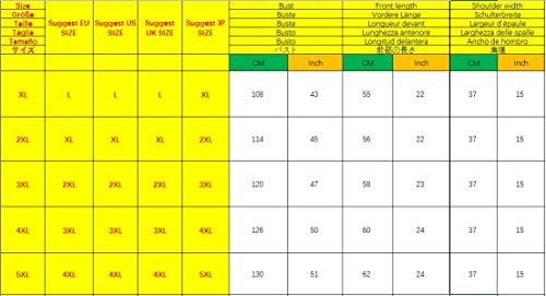 EU XL = Tag 2XL, Büste: 114cm, Kleiderlänge: 56cm, Schulterbreite: 37 cm