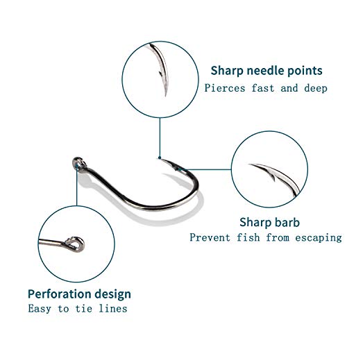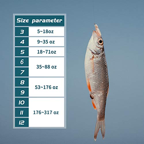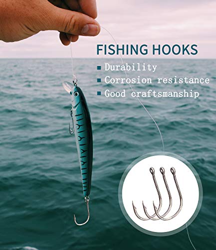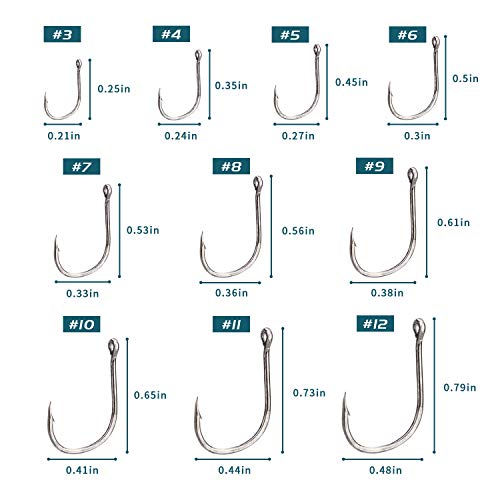 Mehrere Größen: Unsere Premium-Fischhaken haben 10 verschiedene Größen #3-12/0, um Ihre vielfältigen Angelanwendungen zu erledigen, 50g-7000g Gewicht Fische sind brauchbar.