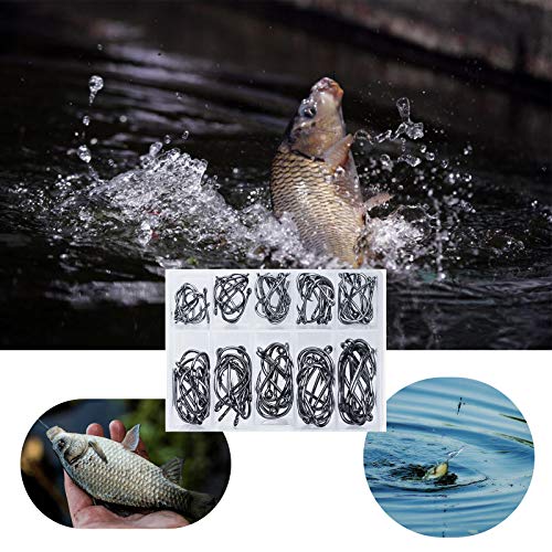 * Angelhaken in verschiedenen Größen: 10 Größen von # 3 bis # 12 sind für Ihre verschiedenen Angelanwendungen vorgesehen. Verschiedene Haken können Fische mit unterschiedlichem Gewicht fangen, #3: 0.15kg-0.5kg, #4: 0.25kg-1kg, #5: 0.5kg-2kg, #6#7: 1kg-2.5kg, #8#9: 1.5kg-5kg, #10#11#12: 5kg-9kg. Das Obige dient als Zeiger für Angler.