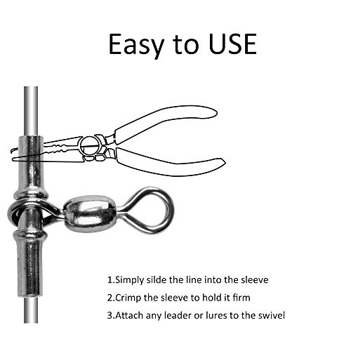 Einfach zu bedienen: Einfach die Schnur in die Hülse anfügen und die Hülse drücken, um sie fest zu halten. Also stützen Sie Vorfächer oder Köder am Drehgelenk.