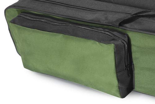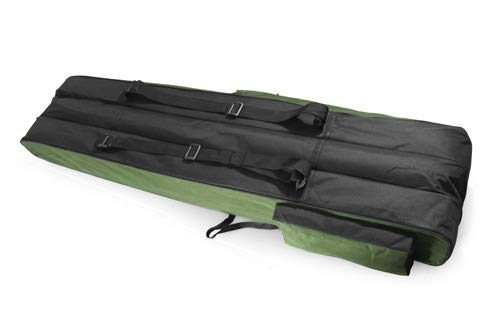 Die Tasche ist alle einem Wasserabweisendem Stoff in der Farbe grün. -3 lange Abteilungen statt dessen fertig montierte Ruten (bis 6 Bereich) -Im Innern befinden sich Halterungen die das Schliddern umschiffen, -Träger die es ermöglichen die Tasche qua einen Rucksack zu abstützen, -die Reißverschlüsse lassen dich in alle beide Seiten generalisieren und anbrechen. – eine große Seitentasche