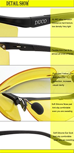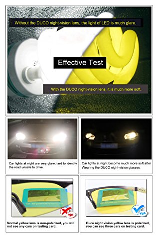 Haben Sie ärgerlich fühlen, wenn der Scheinwerfer zu viel Glanz ist? Fühlen Sie sich die Vision unklar ist, wenn man in der Nacht, Dämmerung oder regnerischen Tag fahren? Keine Sorge, empfehlen DUCO eine professionelle Nachtsichtbrille. Das Objektiv ist UV-Abschirmung und polarisiert die gelbe Linse kann die Blendung zu abspecken, den Kontrast zu Ihrer Vision hinzufügen und visuelle Klarheit zu erhöhen, wenn Sie in der Nacht, Dämmerung oder regnerischen Tag fahren. Zögern Sie nicht, DUCO zu Urteilsfindung Sie Ihre Fahr komfortabel und erschütterungsfest zu halten.