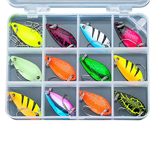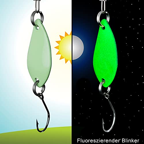 🏆 großer LIEFERUMFANG bestehend ganz 11x Forellen Blinker (Trout Spoons) , 1x UV Forellen Blinker (Trout Spoon), 12x Snaps (#0), 1x Köderbox – Allround Angelzubehör zum Blinkern von EASYHOOKING
