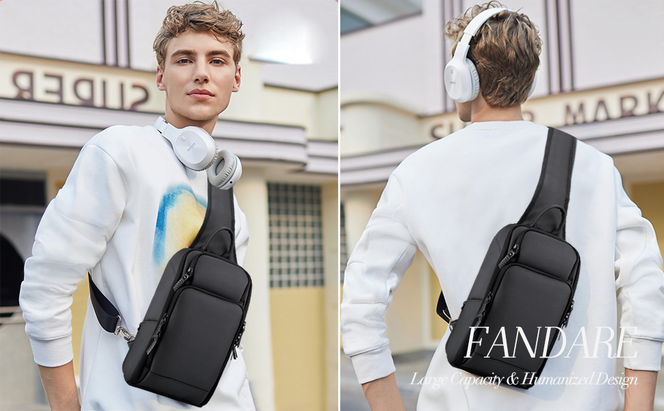 FANDARE Herren Brusttasche Schultertasche Sling Bag Rucksack mit USB Umhängetasche Grosse Kapazität Sporttasche für…