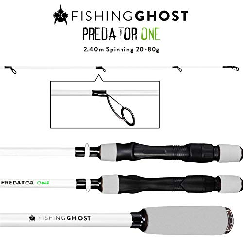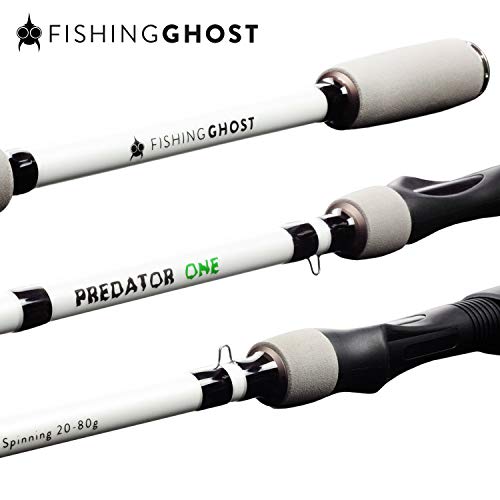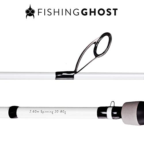 Die 100 % Carbon UltraLight Angelrute/Spinnrute/Steckrute von Fishing Ghost besticht durch extreme Steifigkeit. Mit seiner Länge von 2,40cm und einem Wurfgewicht von 20-80 Gramm ist sie ideal für Spoons im Rahmen und definiert Sportangeln auf Raubfische nicht mehr da kreativ. Durch die direkte Kraftübertragung beim Drill entsteht ein alles drum und dran neues Angelerlebnis. Die Rute verfügt über eine parabolische Rutenaktion mit der sich eine gute Wurfweite erreichen lässt. Durch die Carbonfasern ist die Rute enorm leicht und hat ein Gewicht von 125 Gramm – perfekt für Spinnfischen. Das schlichte sowie sportliche Design der Spinnrute sticht gleich darauf ins Auge. Der Griff besteht aufgebraucht weichem Schaumstoff und liegt super angenehm in der Hand.