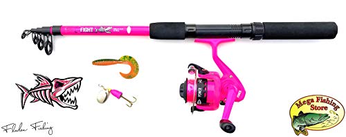 Das perfekte Allround Angel Set für Anfänger, Kinder & Urlaubsangler, die gute Qualität zu günstigen Preisen grasen! Das Angelset kommt in einem farbenfrohem und ansprechendem Design, je nach Auswahl in Pink, Orange oder Grün und lässt Kinderherzen höher schlagen! Das Design der Ruten, Rollen, Schnüren und Spinnern sind aufeinander geschmackvoll. Zusätzlich legen wir noch einen Twister obendrauf ( 1 von 8 Farben per Zufallsprinzip ).