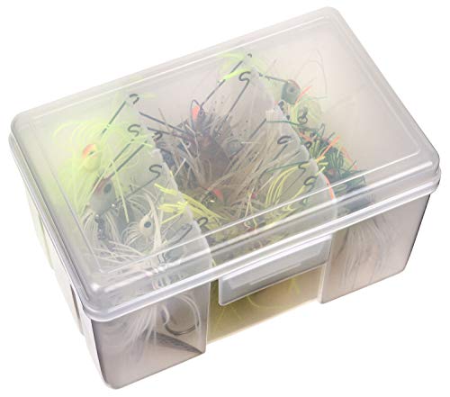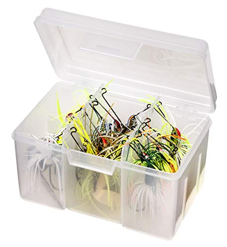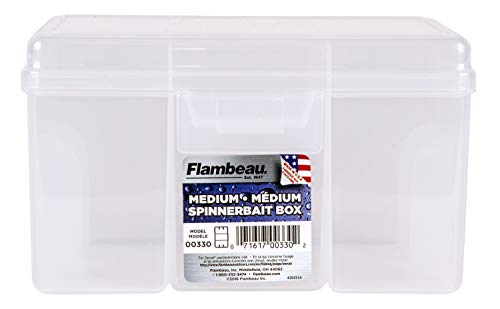 Hat 2 Fächer; Zugunsten 22 Spinnköder; Metrik: 17,5 x 11,5 x 10,3 cm.