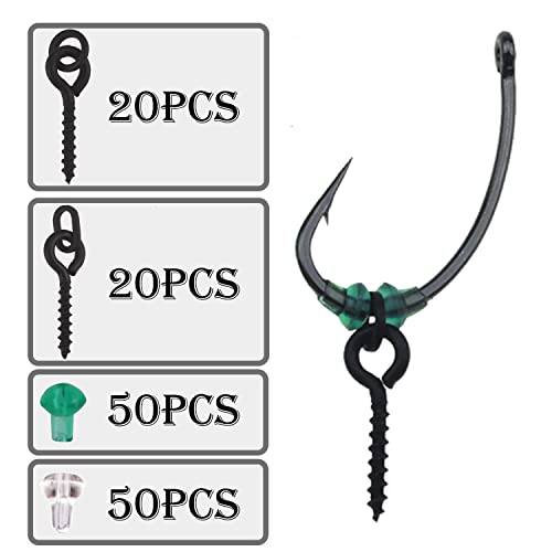 FYSL 140 Ausschnitt Angelhaken Set 40 Ausschnitt Gewinde Boilie Köder Schrauben 100 Ausschnitt Angelhaken Stopper, Hook Stops Angelhaken Set, Kreis Oval Köder Jig Haken Angelgerät Zubehör