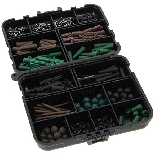 Details: 1G8DS Karpfen Zubehörset: Inhalt: 10 x Wirbel Ausdehnung 8, 10 x quick change swivel Ausdehnung 8, 10 x Multi clips, 10 x soft buffer beads in grün, 10 x 8mm soft shock beads in grün, 10 x grüne tail clips, 10 x grüne lead clips, 10 x schwarze tail clips, 10 x schwarze lead clips, 10 x schwarze 8mm soft shock beads, 10 x braune tail clips, 10 x braune lead clips, 10 x braune 8mm shock beads, 10 x braune rig sleeves, 10 x Ausdehnung 6 barbless Karpfenhaken, 10 x Ausdehnung 8 barbless Karpfenhaken, uvm