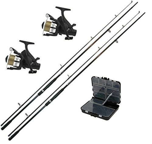 Inhalt: G8DS Karpfen-Rute-Set: 2 G8DS Angelruten Specialist Carp Rute 12 ft. 2,75 lbs. Carbon + 2 G8DS Angelrolle Carprunner Karpfenrolle EG40 + 1G8DS Karpfen Zubehör