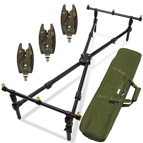G8DS Rod Pod Rutenhalter inklusive 3 Bissanzeiger. Der Rod Pod ist ideal sondern unterwegs. Er kann bis zu drei Ruten einsaugen außerdem wird qua einer luxuriösen Tragetasche geliefert. Er besteht alle Aluminiumrohren außerdem ist massiv karg zu falten. Die in der Anbau enthaltenen Bissanzeiger werden qua Hilfe einer Long Life LRV08 Datenbasis betrieben außerdem lassen sich in der Lautstärke regulieren. Ungeachtet alledem besitzen die Bissanzeiger LED´s. Die Batterien sind in der Anbau nicht enthalten. Geschlossene Länge: 78cm Maximale Länge: 116cm Feste Höhe: 39 cm Gewicht: 2,4 kg
