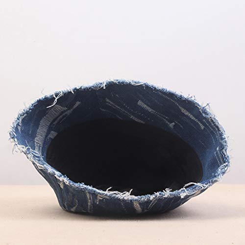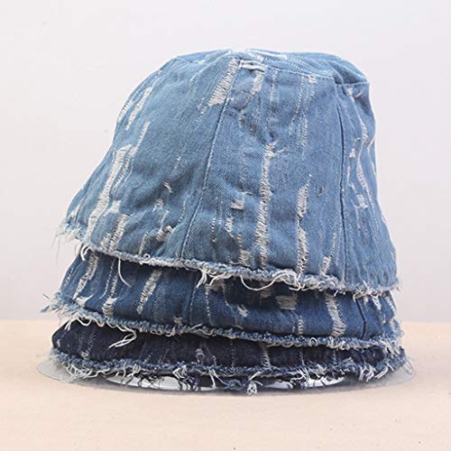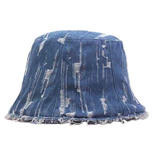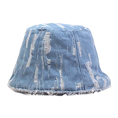 Modetrends und Hip-Hop-Styles Bucket Hut, Kuppelform, Vintage Washed Denim, Used-Look Ripped Loch.